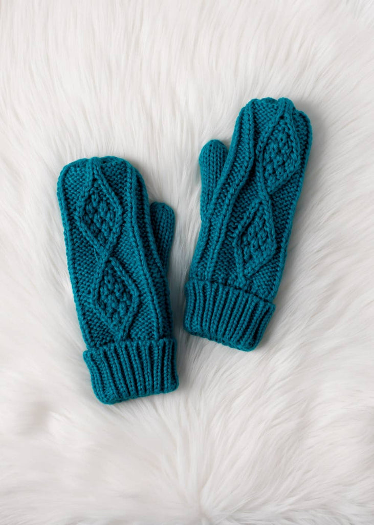 Sapphire Blue Cable Knit Mittens