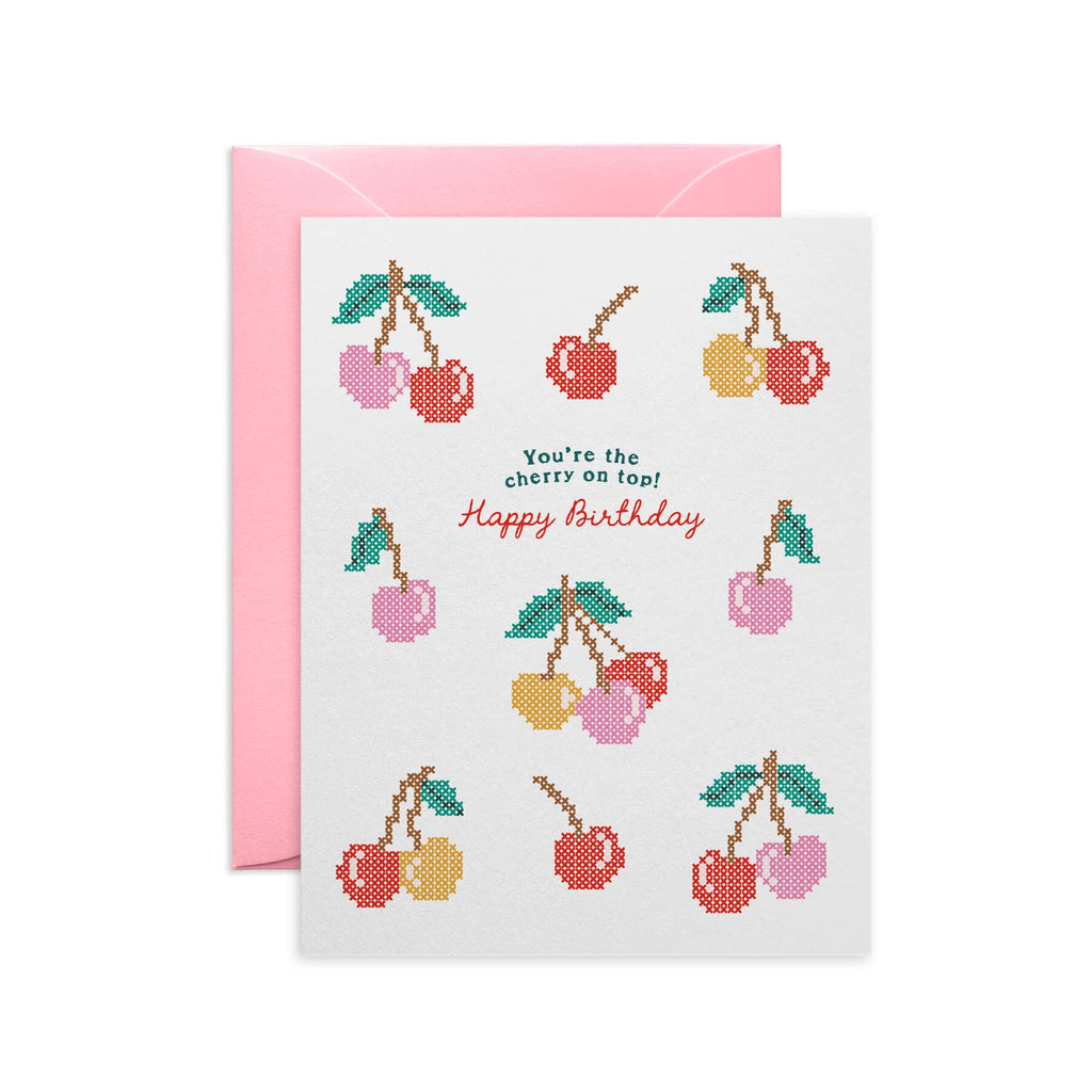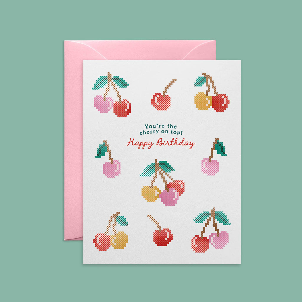 They're the cherry on top, and this cross-stitch inspired birthday card lets them know it. A bright, charming way to celebrate someone who sweetens your life.