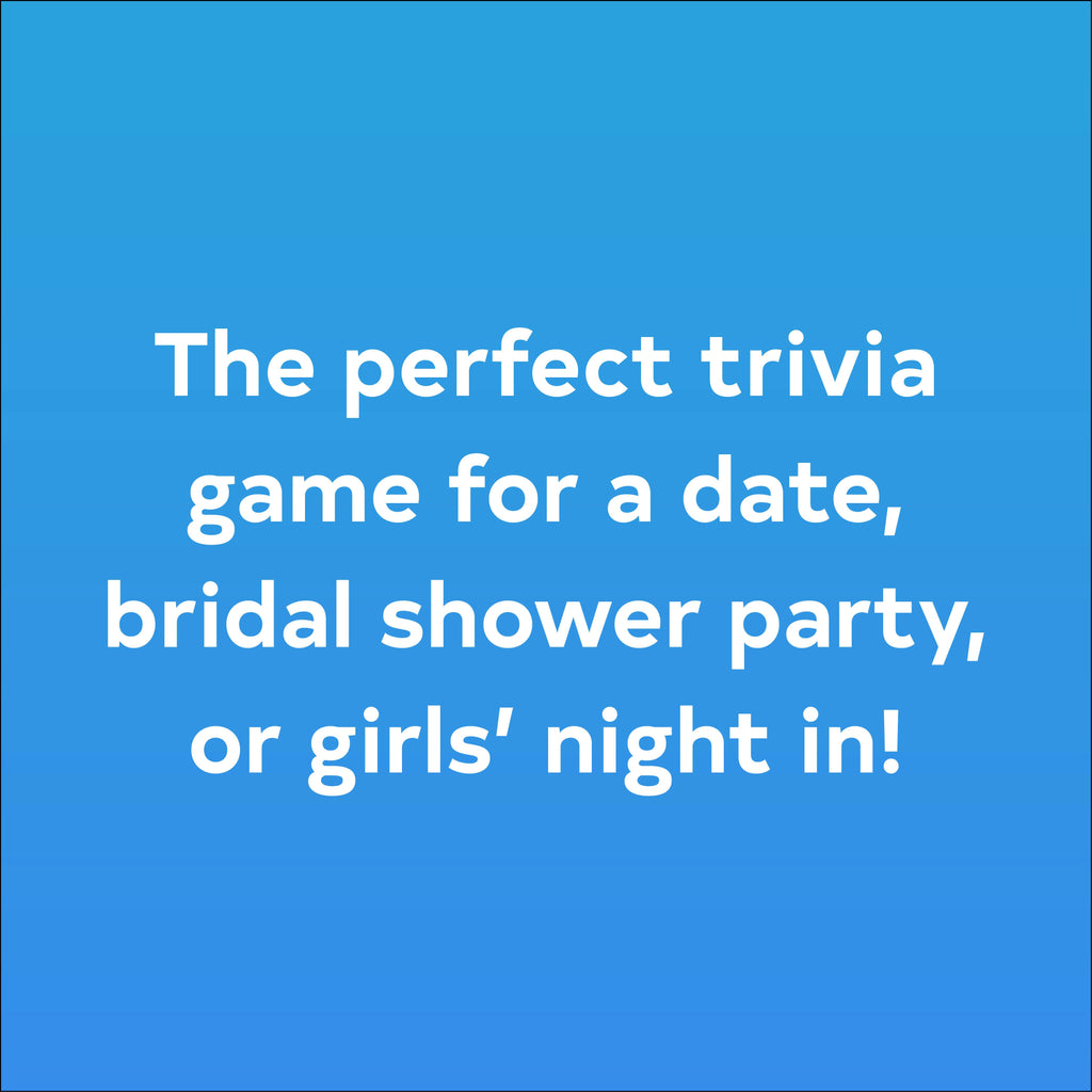 Featuring 50 questions about love and romance drawn from history, literature, science, and pop culture, this sweet little trivia game is perfect for a cozy, super fun date with a sweetheart, a bridal shower party, or a girls' night in.