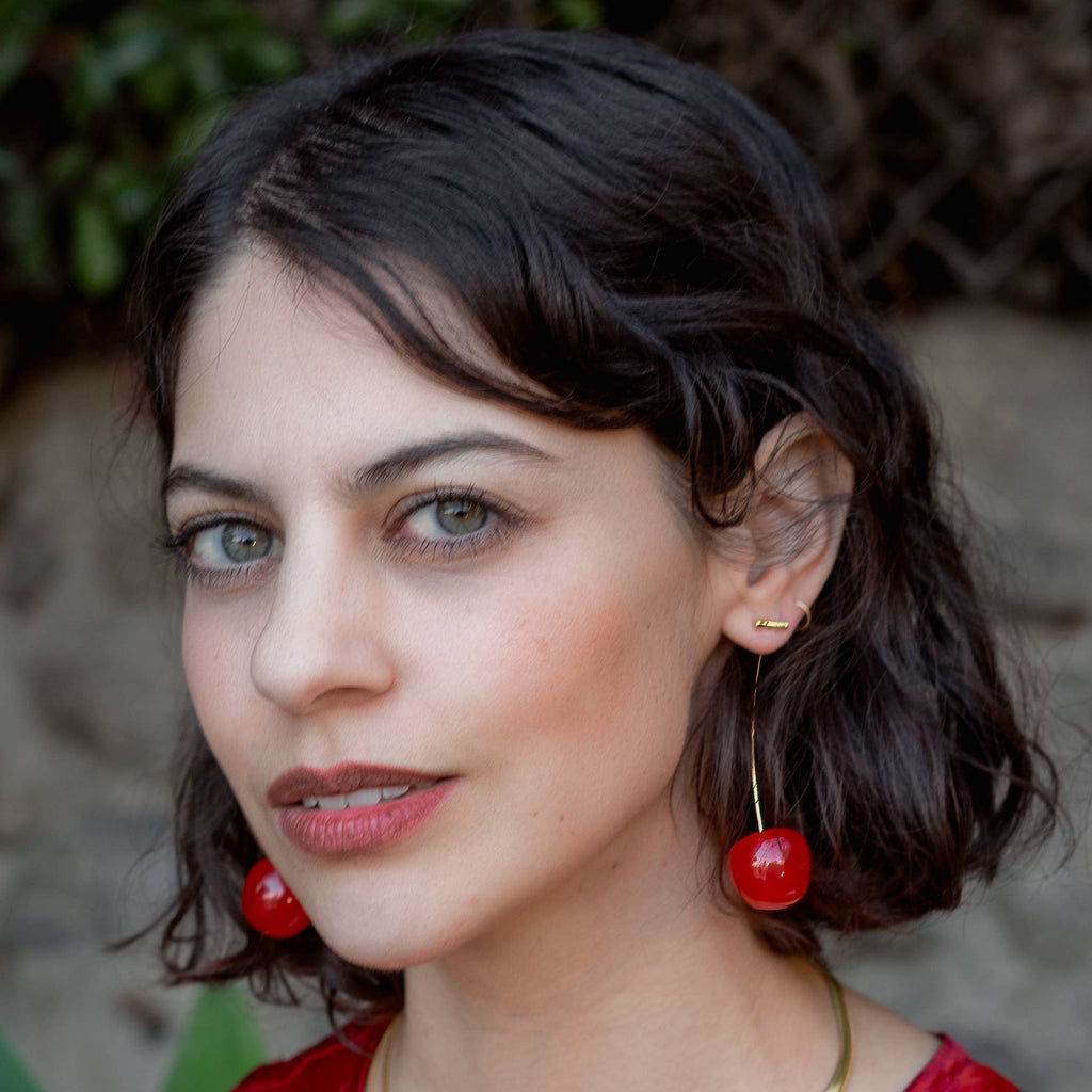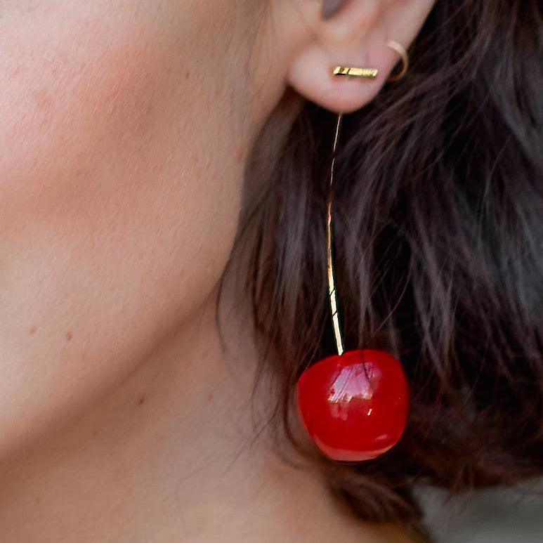 Cherry Threader 18K Gold Plated/Resin Earrings