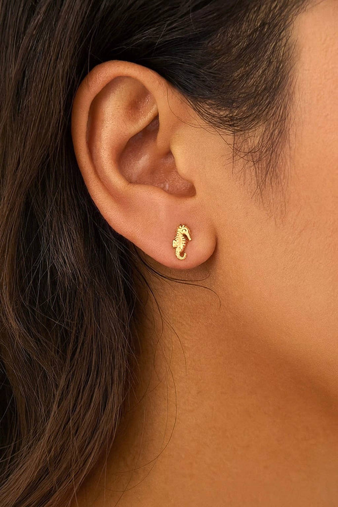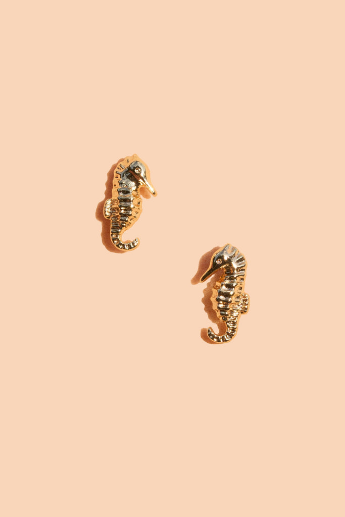 Peter and JuneDive into a splash of maritime magic with these delightful Fortune Seahorse Studs! Crafted in shimmering 18K gold plating, these charming little swimmers bring a whimsical touch to any ear. Perfect for ocean lovers and those who believe in a little seaside luck, these studs capture the graceful elegance of seahorses in miniature form. Whether you're channeling coastal vibes or simply adoring all things nautical, these golden beauties are your ticket to making waves with style. A playful reminder that good fortune swims in many directions!