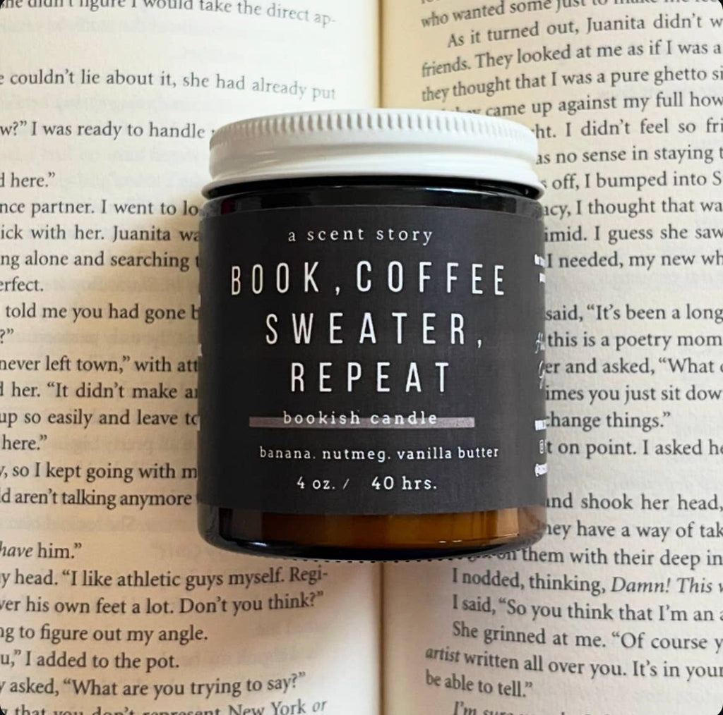Book Coffee Sweater Repeat 4oz Bookish Candle