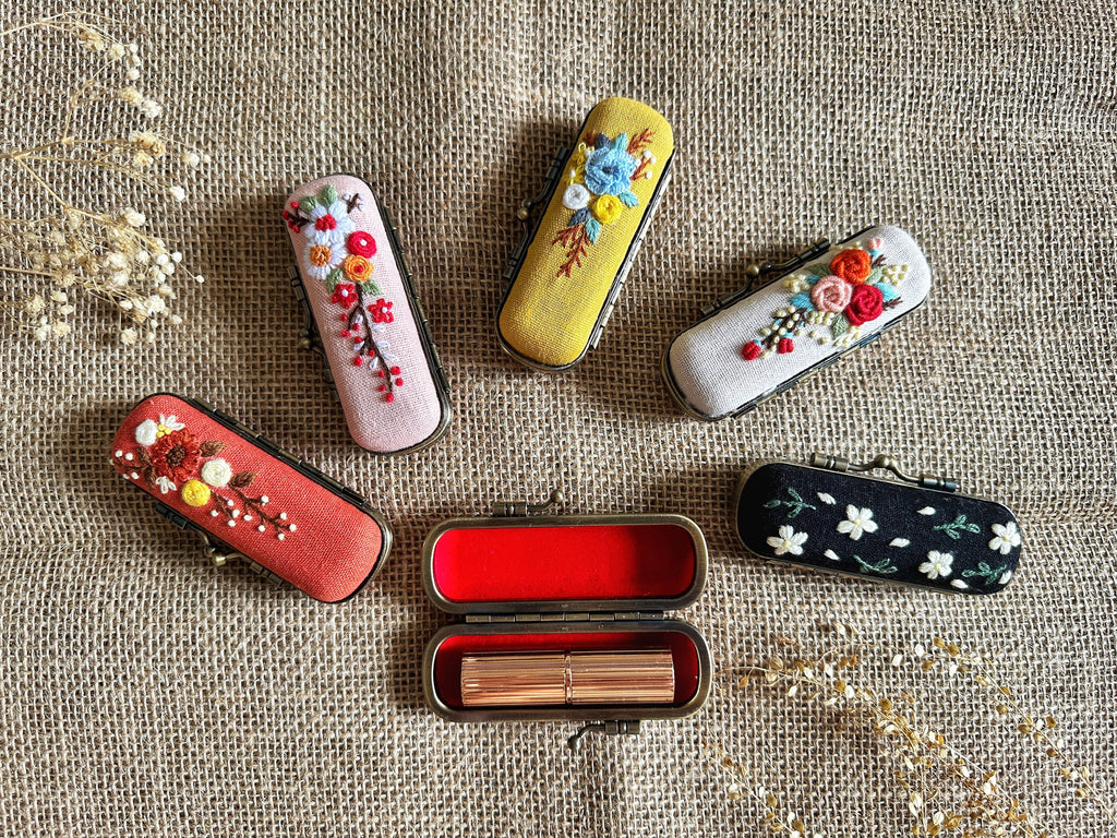Quince FablesThis lipstick case is a great way to keep your lipsticks organized and in one place. The hand embroidered design on the top of this lipstick holder makes it a perfect gift for any woman on your list! Measurement: 3.6" x 1.2" x 1.2" (9cm x 3cm x 3cm)
