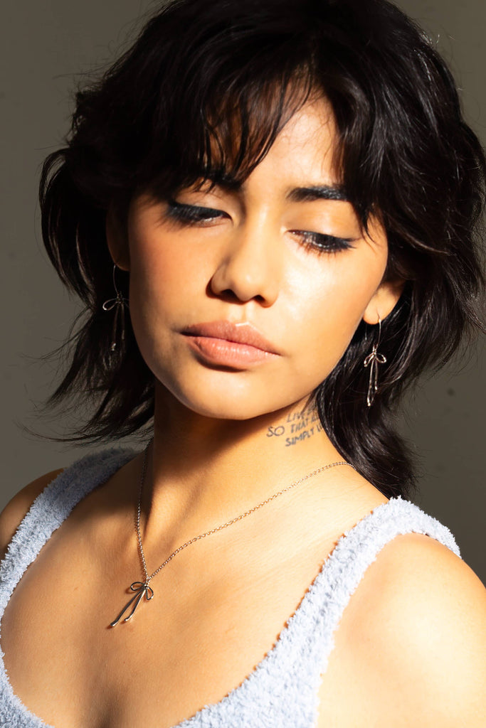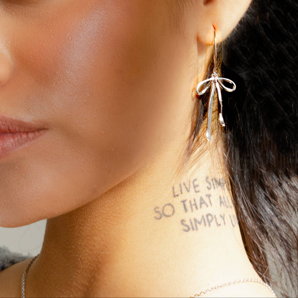Peter and JuneThese silver bow earrings bring a touch of sass and sophistication to any look. With their bold, statement-making design, they're perfect for anyone ready to embrace their confident side. Whether you're dressing up for a night out or adding flair to your every style, these playful bows deliver instant personality. Lightweight and versatile, they pair beautifully with both casual and dressy outfits.