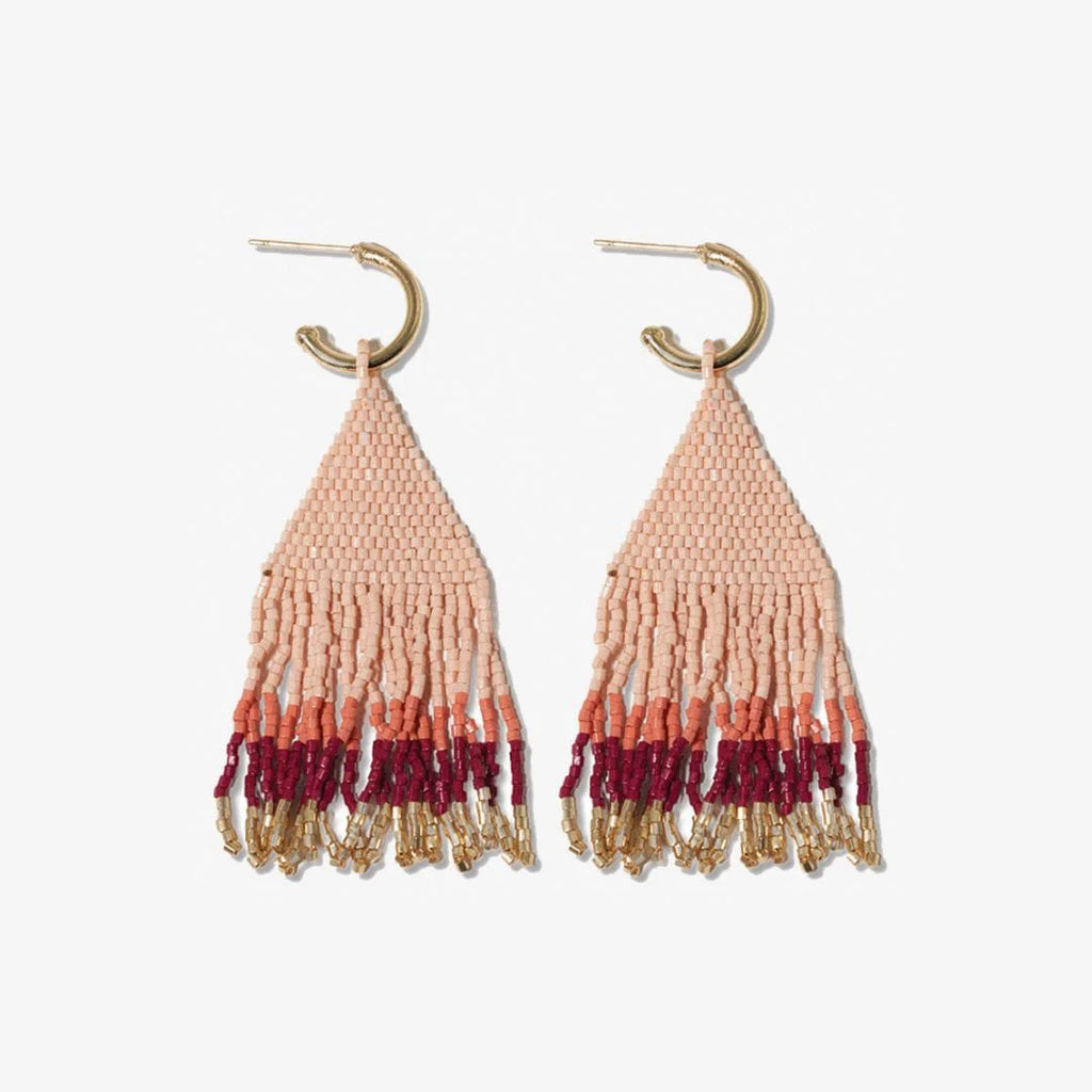James Mini Gold Hoop Colorblock Beaded Fringe Earrings - Blush