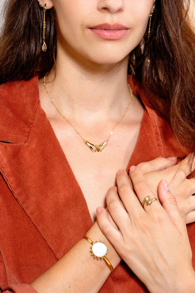 Script Hands Necklace in 24K Gold Plated
