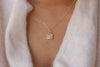 - Materials: 14k gold-filled chain, pewter pendant plated in 24k gold, resin, dried flower