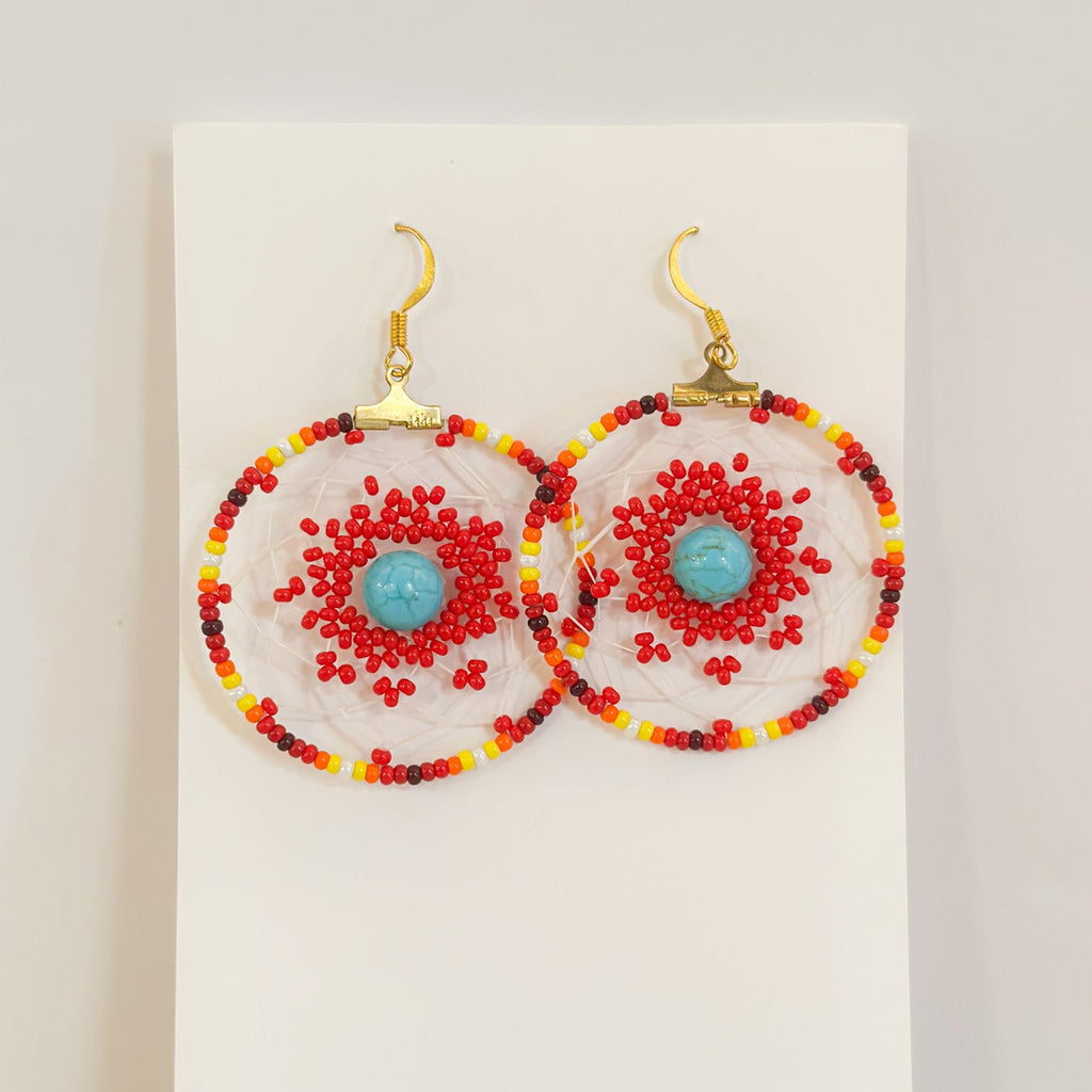 These handcrafted beaded circle earrings showcase meticulous artistry by Larry Angels Ballestreros, a local West Seattlite. Each pair is expertly constructed with precision beadwork. Beyond its striking visual impact, this piece carries meaningful purpose—all proceeds support MMIWG Awareness, allowing you to make a powerful statement with every wear. A bold choice for those who demand quality craftsmanship and refuse to compromise on values.