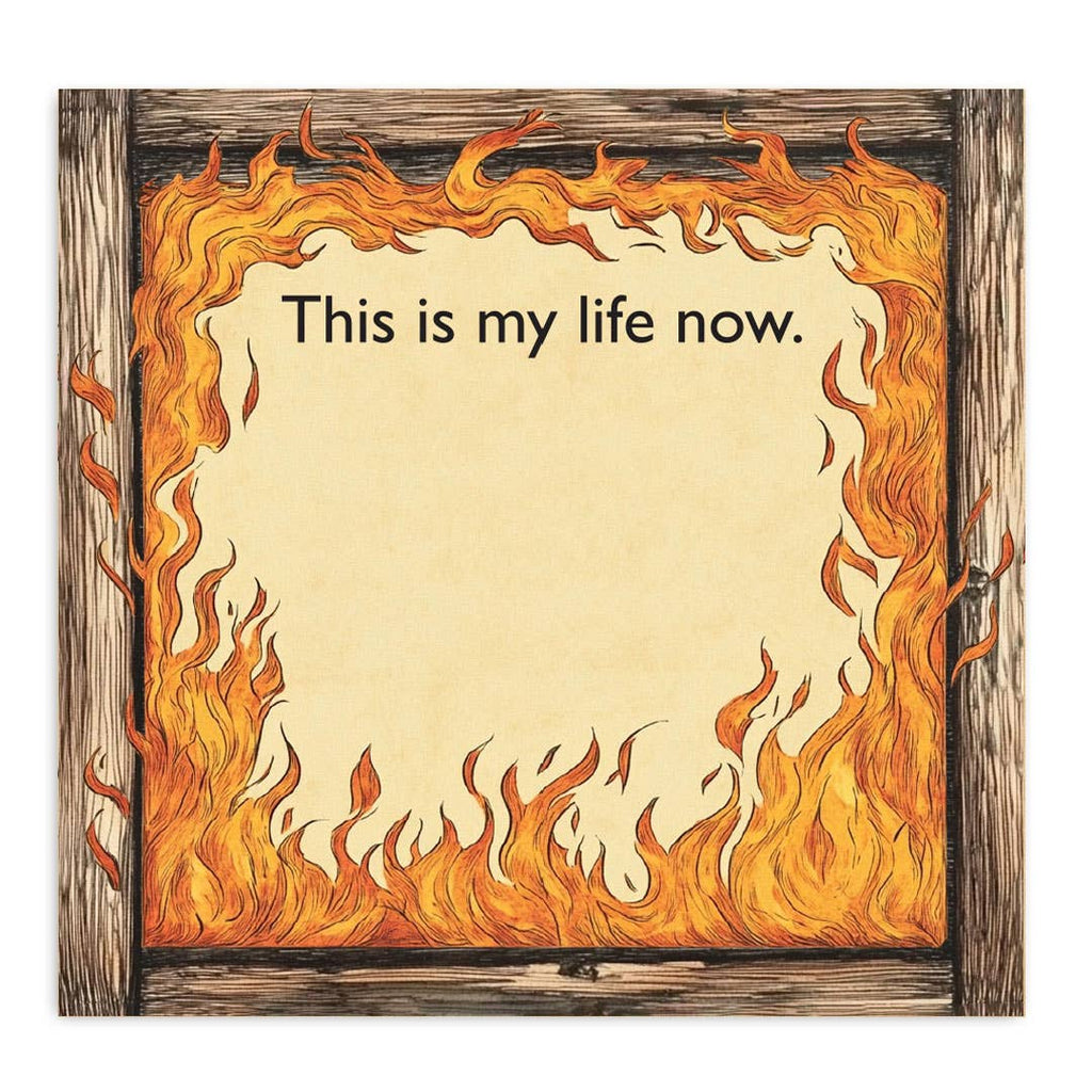 Bad Betty Greeting Co.Embrace the chaos with our "This Is My Life Now" sticky note, surrounded by a fiery design that perfectly captures those moments when life feels like it’s a bit too much! Ideal for anyone navigating the daily grind with a sense of humor, this note is a sassy reminder that sometimes you’ve just got to accept your situation—flames and all.