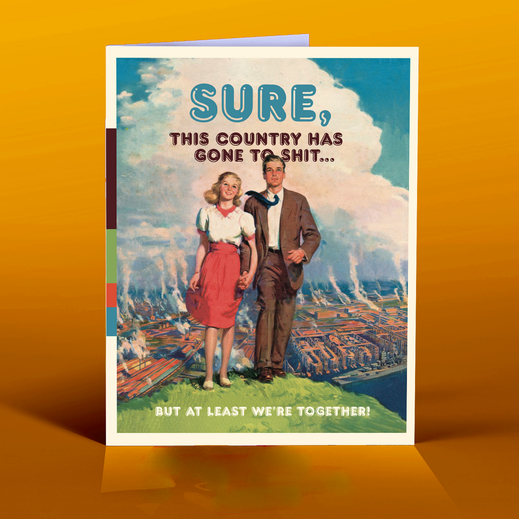 Celebrate love and resilience with this daring political greeting card that captures the spirit of togetherness amid chaos. Perfect for couples who appreciate humor and current events, it’s a bold way to mark anniversaries or special moments with a witty nod to today’s political climate. Share a laugh and a reminder that, no matter what, you’re in it together.