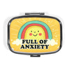 Bad Betty Greeting Co.Get ready to tackle life’s stress with our silly metal pill box that boldly states "Full of Anxiety," complete with a cheerful, happy rainbow because who doesn’t love a good dose of irony? This charming pill organizer is your go-to stash for vitamins, meds, or little nuggets of sanity—whatever keeps you from launching into orbit! Compact and travel-friendly, it slips right into your bag or pocket, ensuring you’ve got a slice of calm wherever chaos strikes. Perfect for friends who find humor in their high-strung lives, this pill box makes a fabulous gag gift with a side of health. Because if you’re going to be anxious, at least do it with style! 🌈💊 •