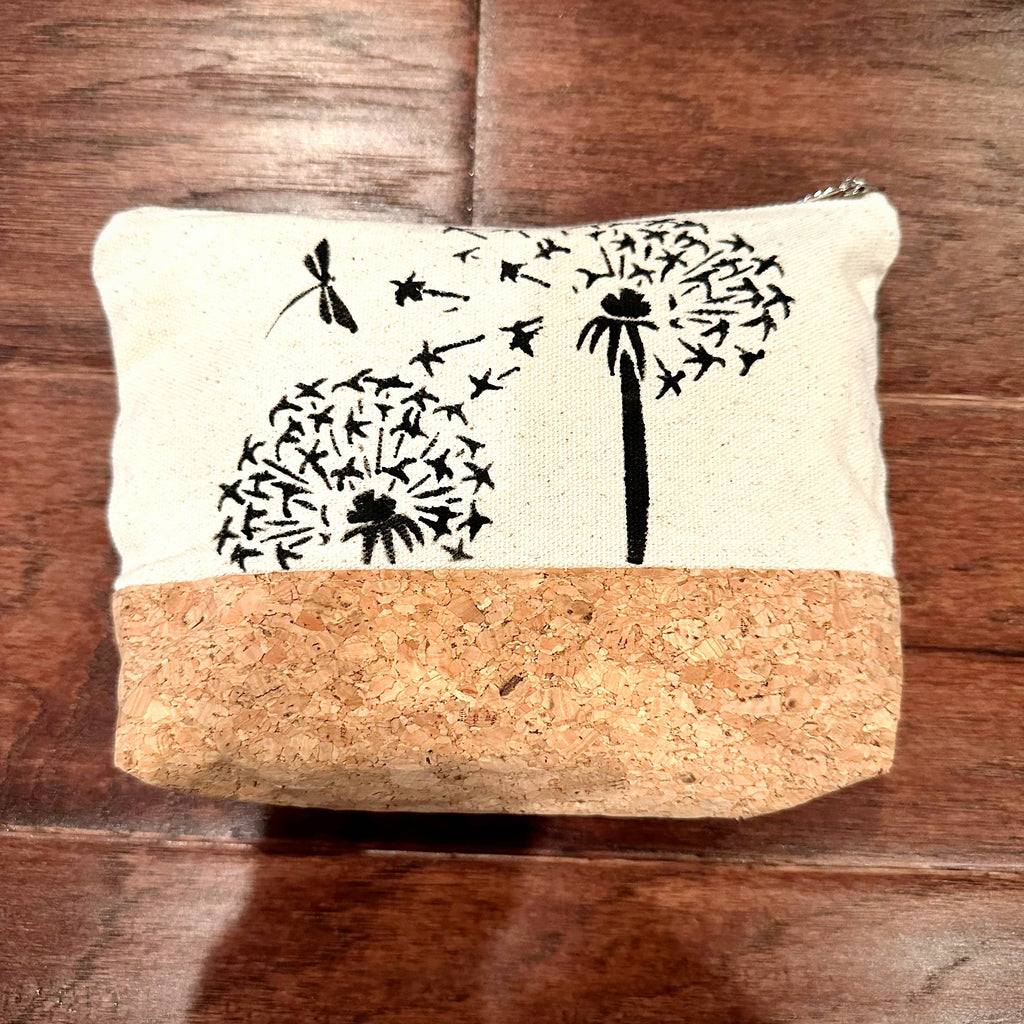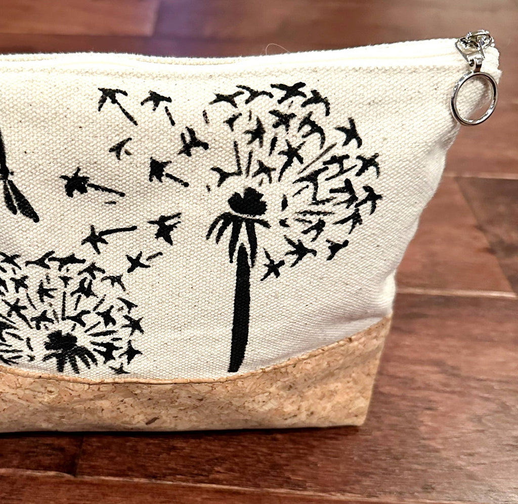 Features a full zip closure, bottom gussets, flat bottom for easy positioning, leather zipper pull, and hand-painted art. Made from 100% cotton 10oz. canvas and Polyurethane faux cork.