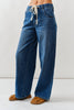 Aaron & AmberEffortless comfort meets laid-back style in these drawstring waist straight-leg jeans. Crafted from soft, medium-wash denim, they feature a relaxed fit with a zipper fly closure and an adjustable drawstring waist for a customizable fit. The wide, straight-leg silhouette offers easy movement and a casual.