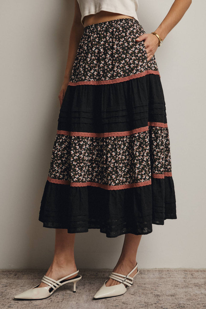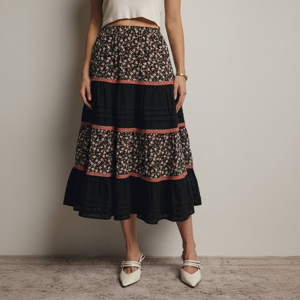 ForteRomantic and versatile, this skirt brings effortless boho charm with a hint of Western influence-perfect for pairing with tops, graphic tees, or denim for an elevated everyday look.