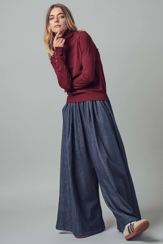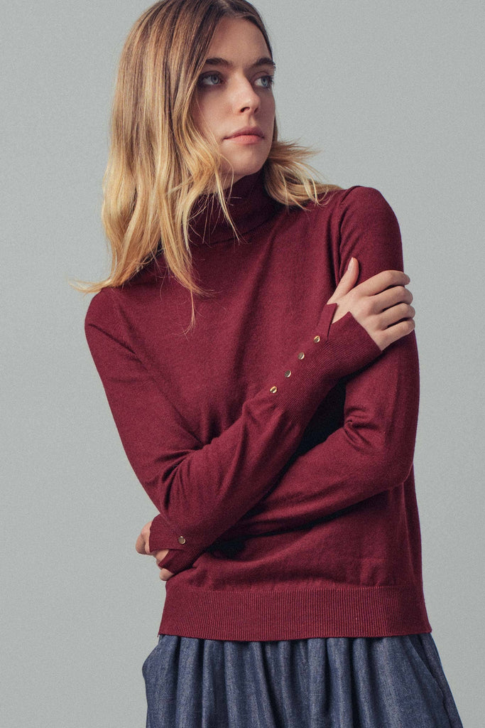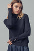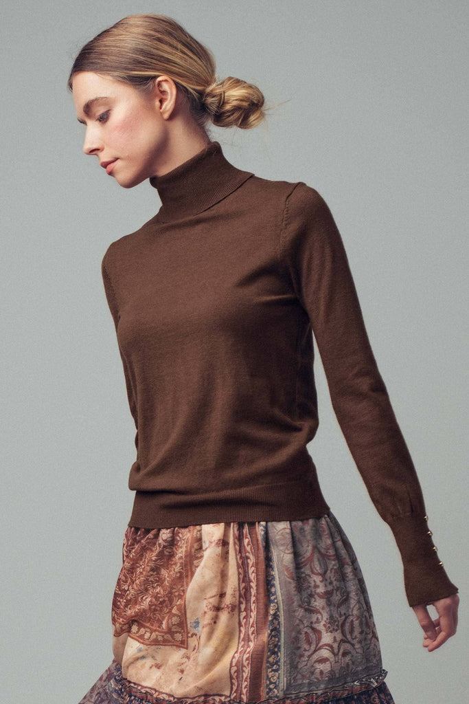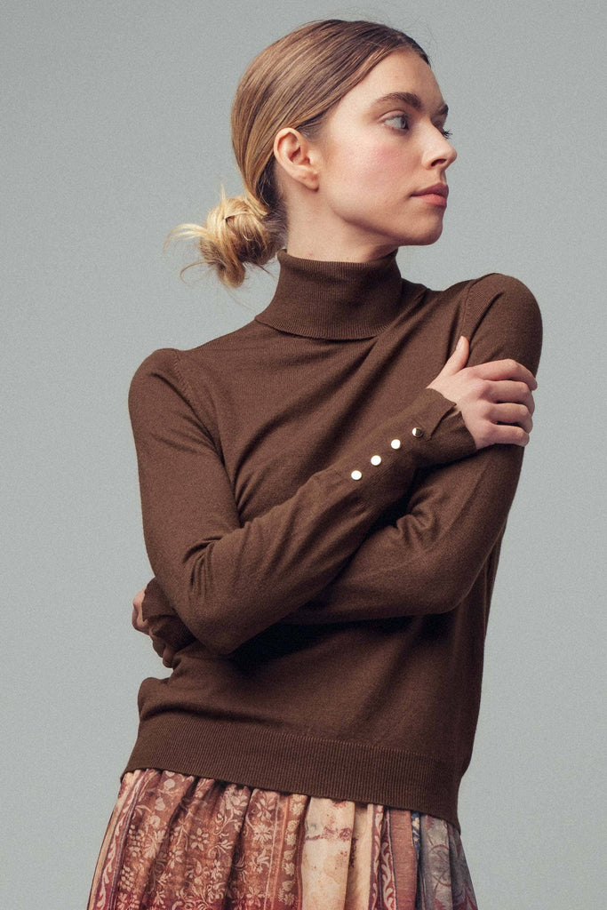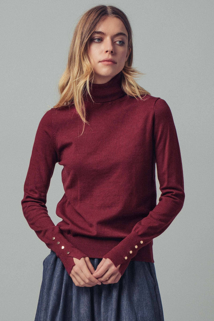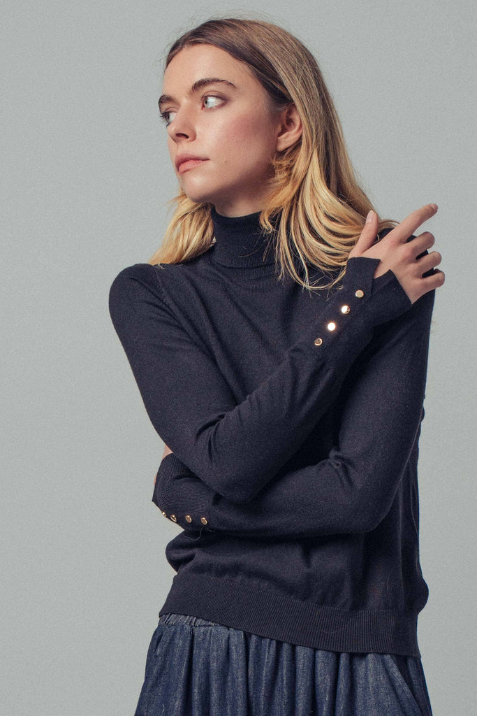 Turtleneck Sweater With Gold Button Fitted Cuff Detailsy