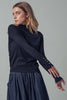 The design is finished with a row of polished gold-tone buttons at the cuffs for a touch of refined detail.