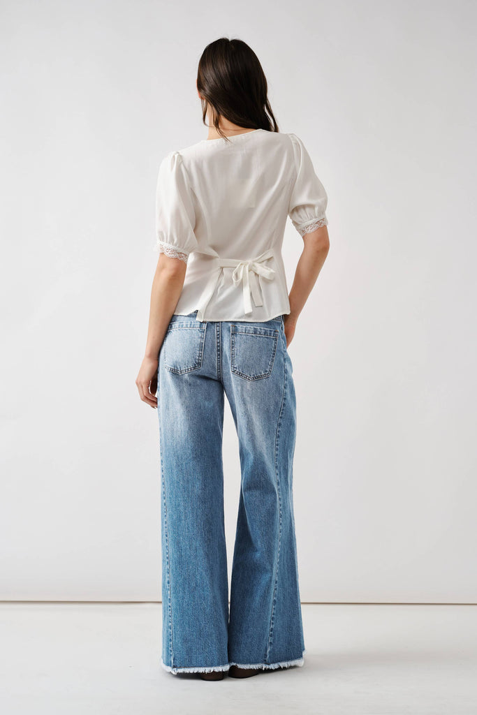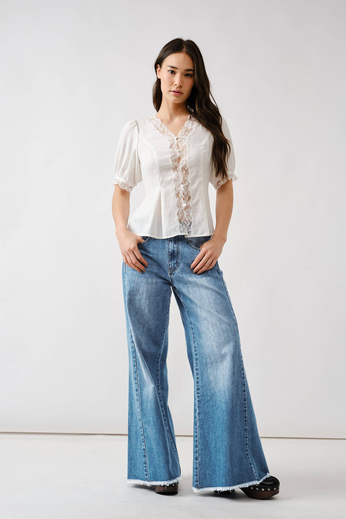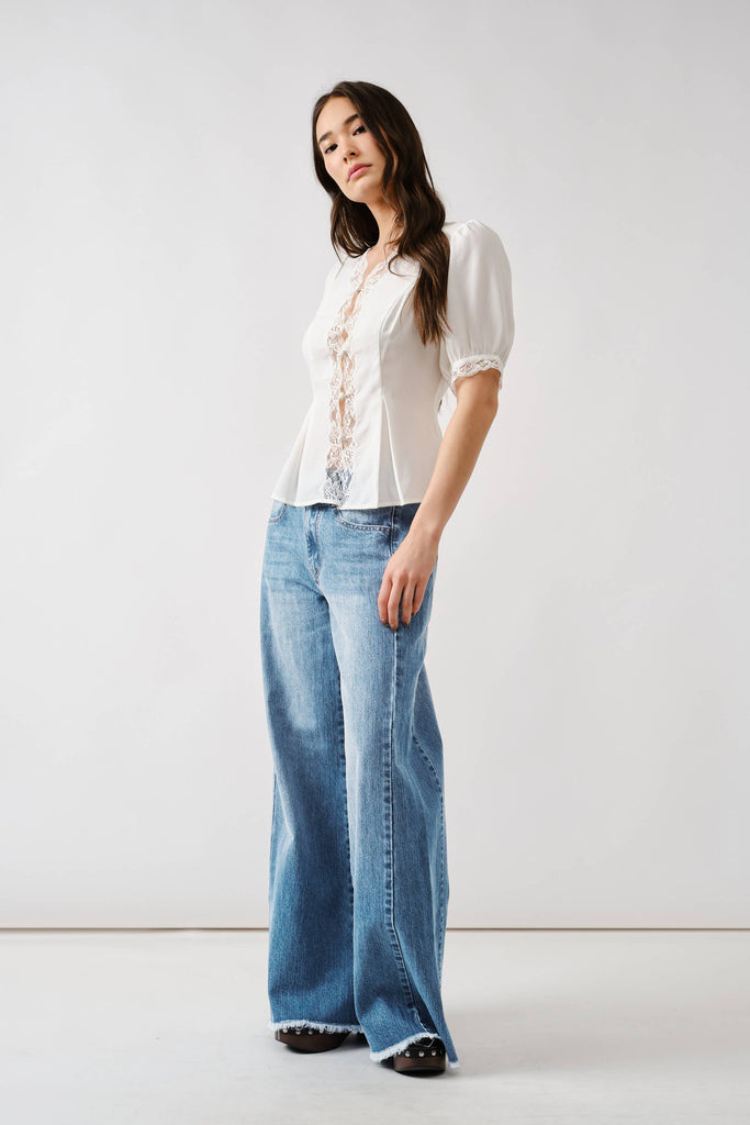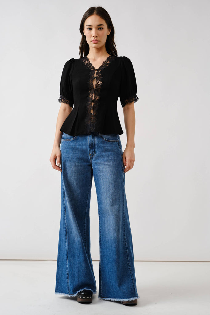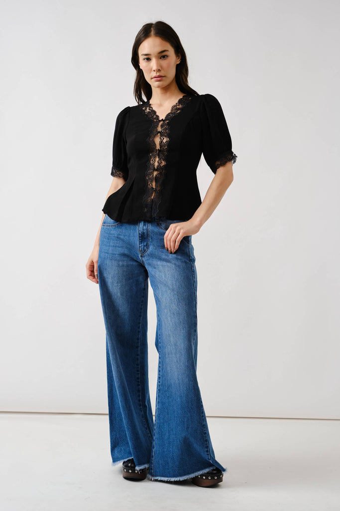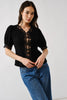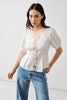 Aaron & AmberFeminine details meet timeless silhouette. This lace embroidered top is crafted from lightweight poly and adorned with delicate lace trims along the placket and sleeve cuffs. A scalloped-edge placket adds vintage-inspired charm, while soft pleated pintucks at the waist subtly shape the silhouette for a flattering, romantic fit. -Scalloped placket trimmed with fine lace