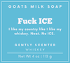 Goat milk soap for customers who love humor, gifting, and statement products. This scent is: Fuck ICE: I like my country like I like my whisky. Neat. No ICE.