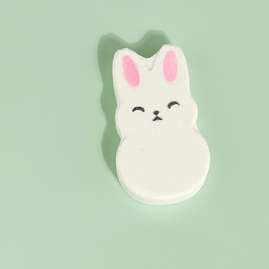 - Adorable bunny-shaped bath bomb designed to look like a marshmallow