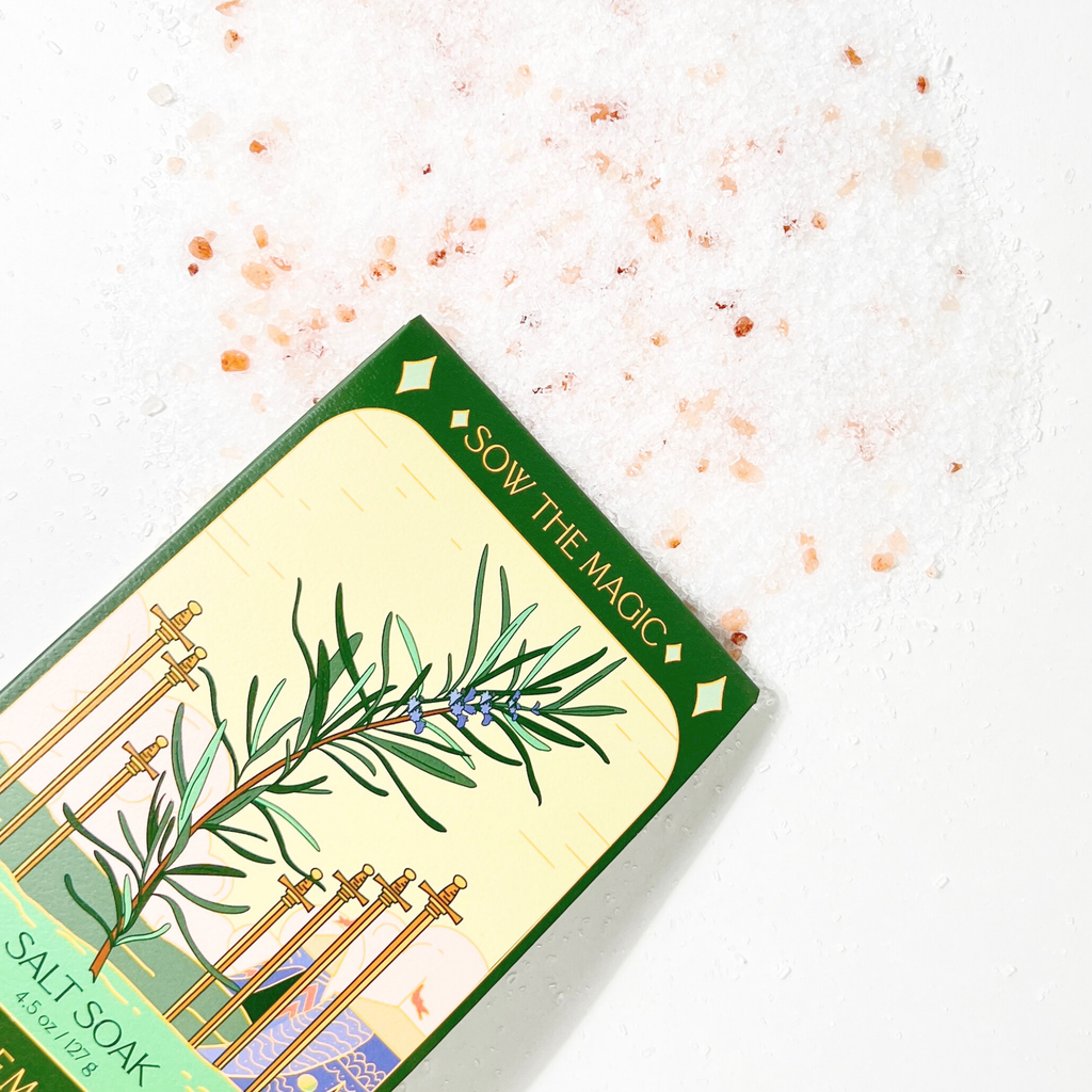 🌿 Rosemary Tarot Salt Soak Soak away stress with Rosemary, Cinnamon, and the Seven of Swords. This invigorating ritual soak awakens your senses while helping you find clarity and calm amid chaos.