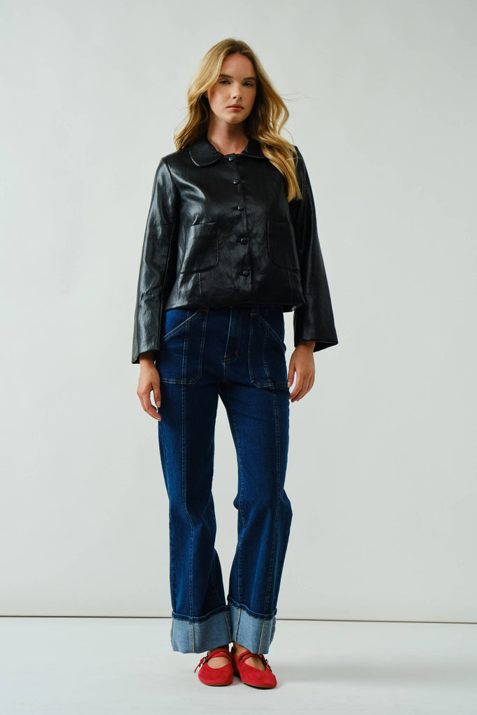 Upgrade your denim collection with these Super Stretch Straight Jeans featuring unique stitch details. Designed with ultra-stretch fabric, they offer all-day comfort while keeping a sleek straight-leg silhouette. The folded hem adds a casual yet chic touch, making them perfect to pair with sneakers or heels for versatile styling.