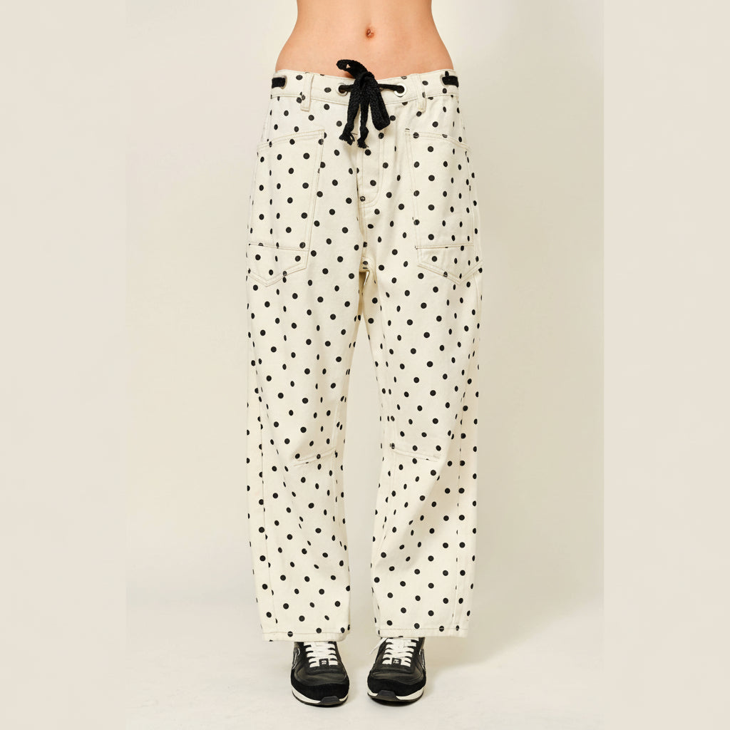 Polka Dot Barrel Denim Pants