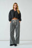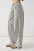 Striped Wide Leg Pants With Rope Belt - Off White W/Black Stripes