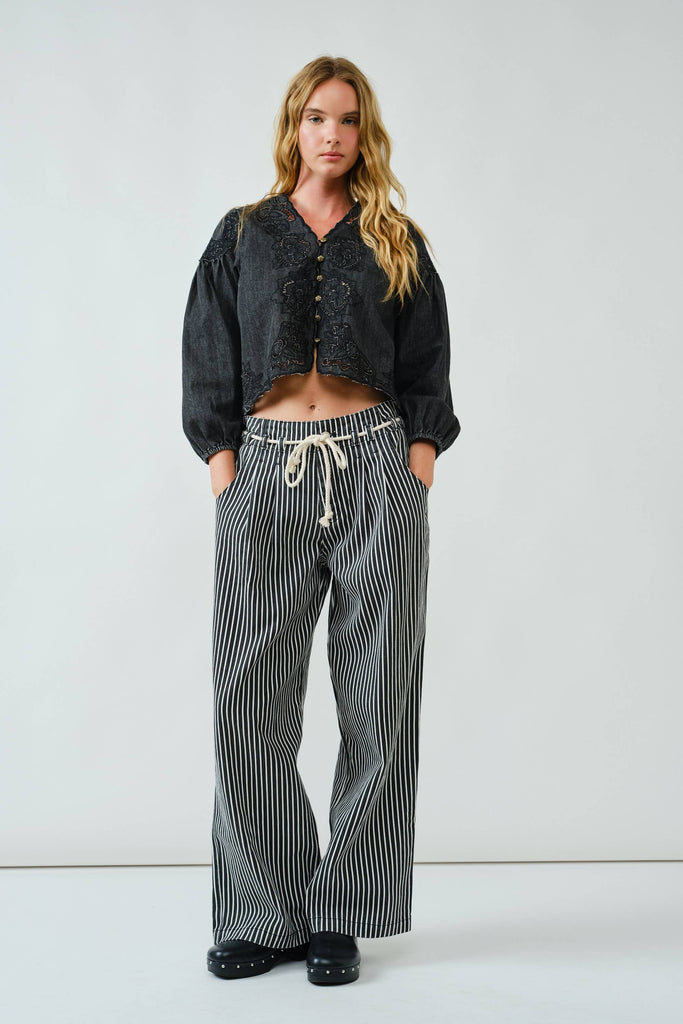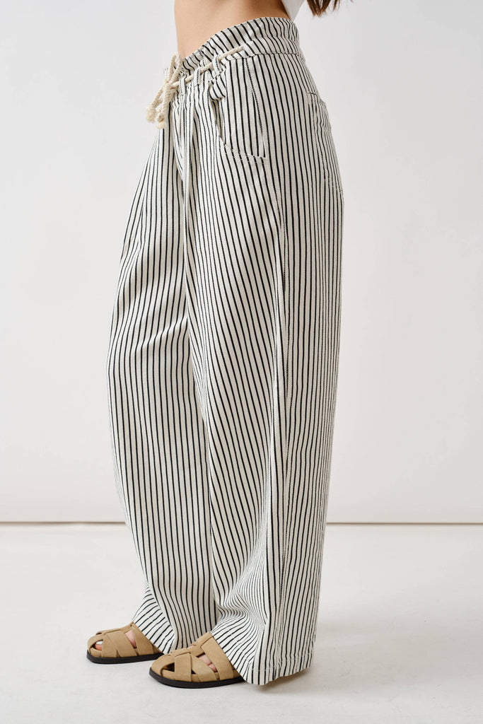 Aaron & AmberEffortlessly stylish and endlessly versatile, these wide-leg pants feature a classic stripe pattern and a boho-inspired rope belt for a touch of laid-back charm.