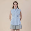 A & SHECotton Poplin Pleated Waist Sleeveless Shirt with Collar. This tailored sleeveless shirt top features a classic collared neckline, subtle pleating for a flattering shape, and a clean button-down front. Available in crisp white and soft sky blue, it's the perfect staple piece that combines polished structure with airy summer ease.