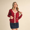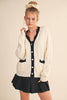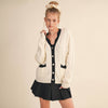 - Button down with contrast ribbed scallop knit