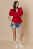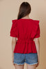 Textured Cotton Surpliced Puff Sleeve Peplum Top