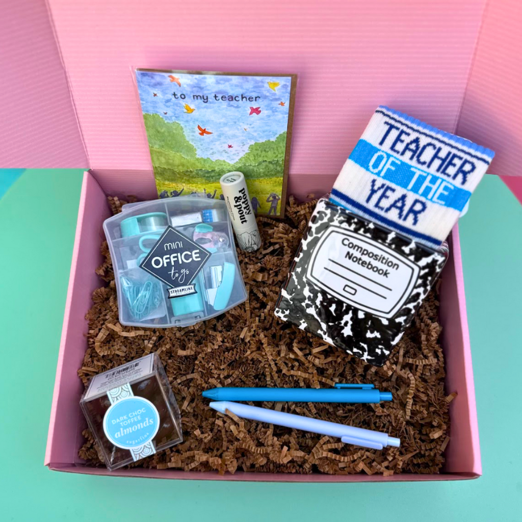 Please let us know any special instructions in the order notes section at checkout! Examples could be if the person loves coffee or just got a new cat or is obsessed with Lizzo! Anything you'd like to include to make it more personalized- we will put together something fun for you- or just let it be a complete surprise!