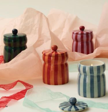 Cabana Striped Hand Painted Ceramic Candle With Lid - Spiced Apple
