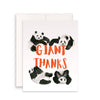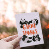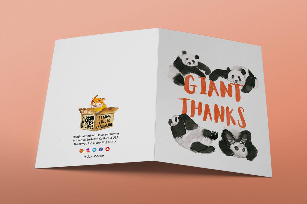 Liyana Studio"Giant thanks!" from four rolling giant panda bears. This playful pun-intended thank you card is the funny gift you want to give. Whether it's for a baby shower thank you pack, or a mentor teacher thank you note. or small business thank you gift, this unique handmade card is perfect.