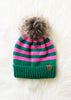 Green & Pink Striped Pom Hat