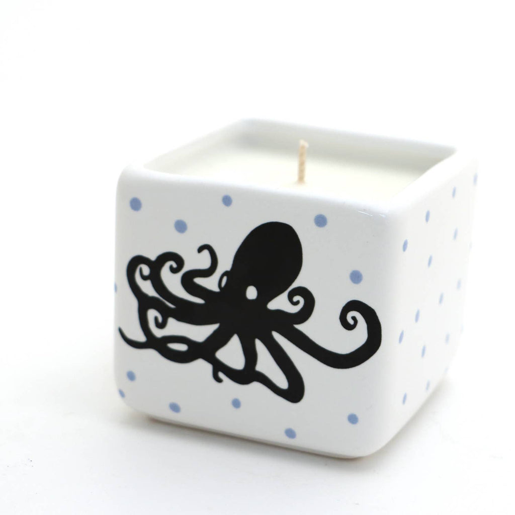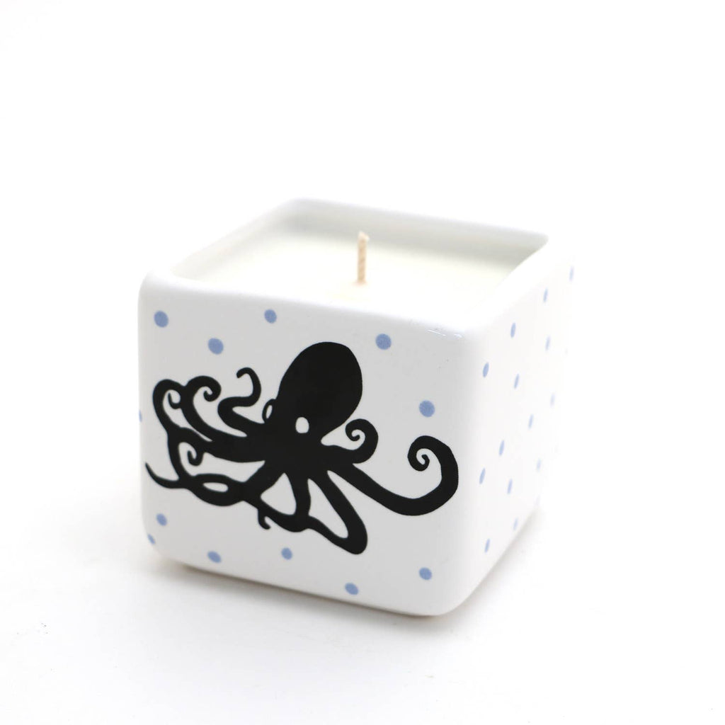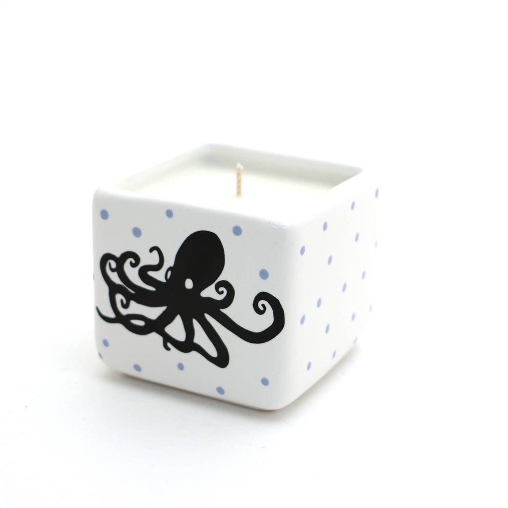 Lenny MudOctopus candle is hand-poured soy wax in an 8-oz. ceramic pot, handmade from stoneware clay.