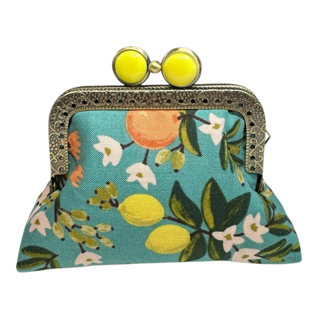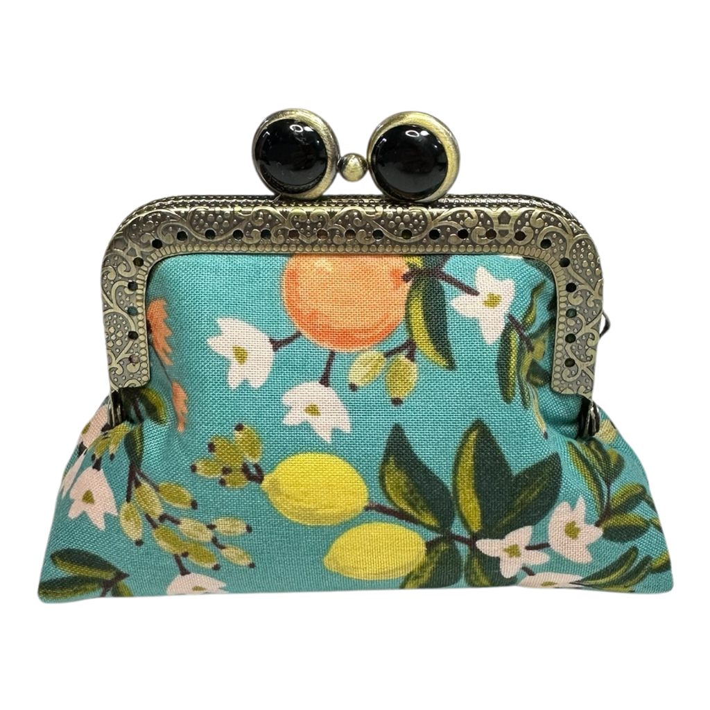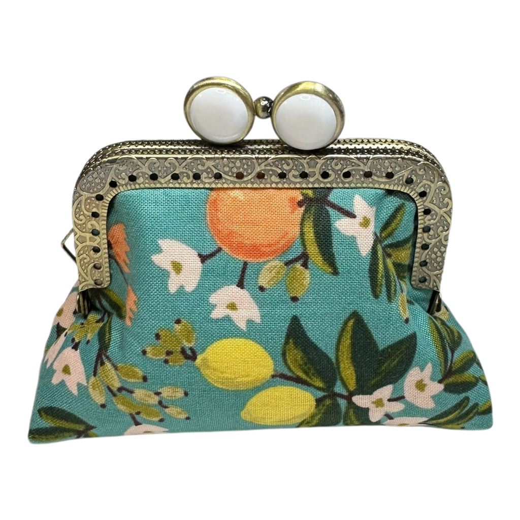 Kiki & Syds Mini Clutch Coin Purse in Citrus Teal Print