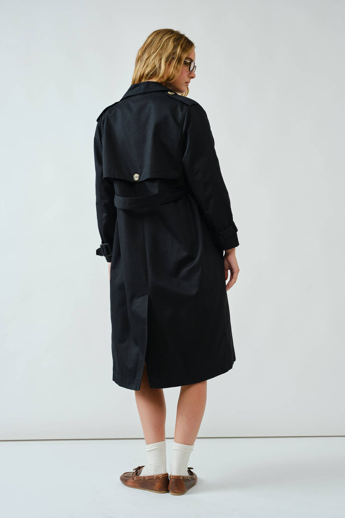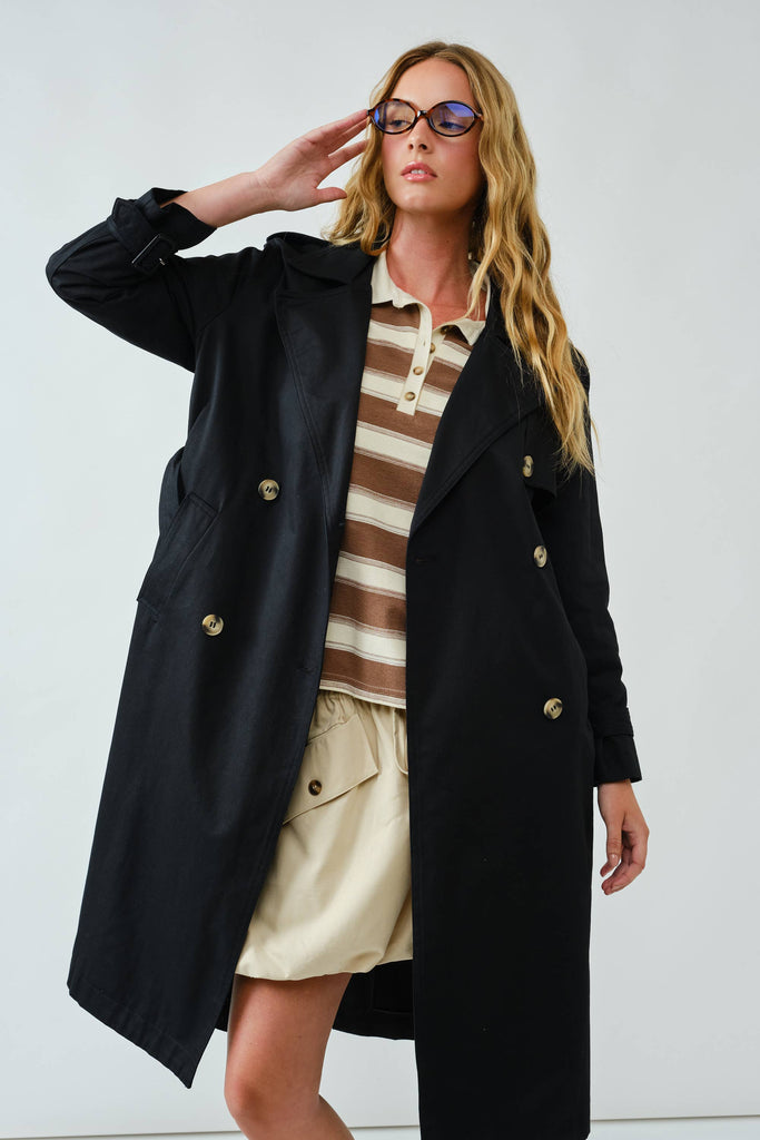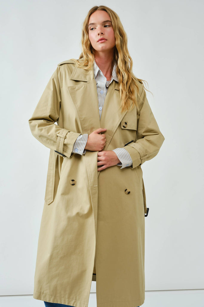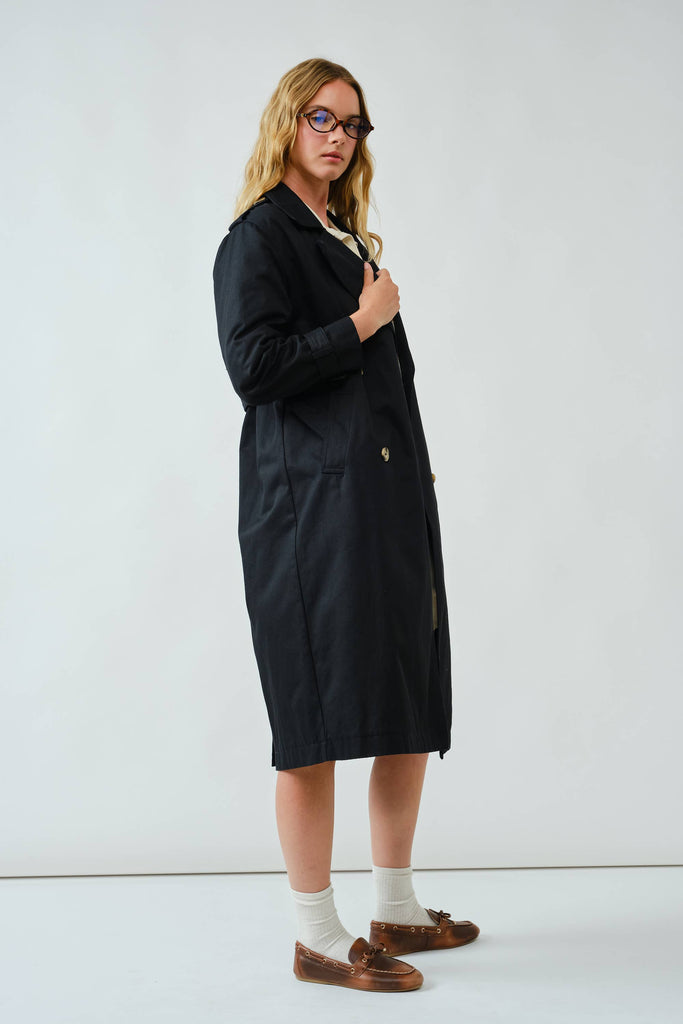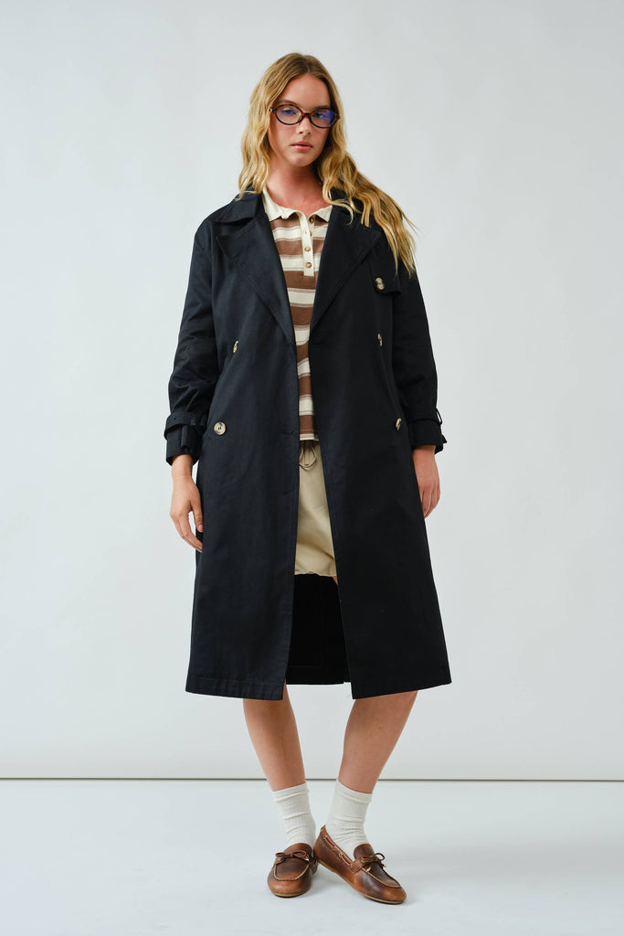 Aaron & AmberCrafted from heavy-weight cotton twill, the Aimee Trench Coat offers a structured yet comfortable fit with its oversized silhouette. Featuring a double-breasted front and a self belt, it provides adjustable shaping and classic styling. The midi length adds versatility, making it suitable for both professional and casual settings. Available in timeless tan or black, this trench coat combines durability with refined design for a sophisticated outerwear option.