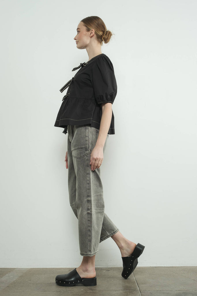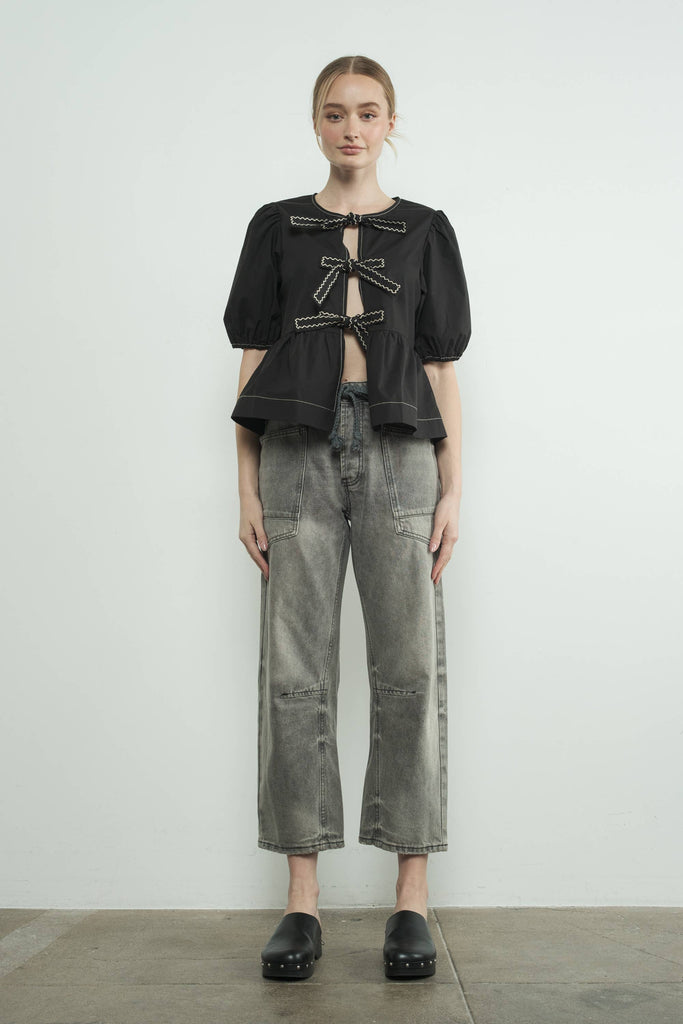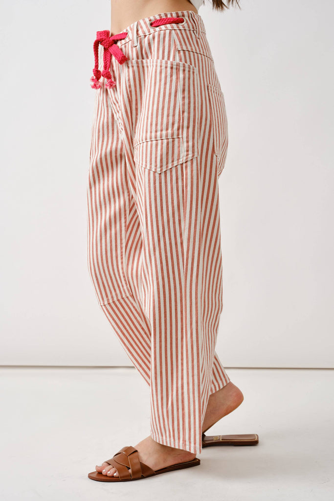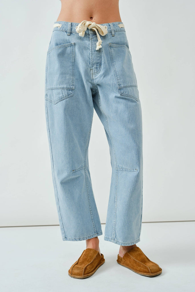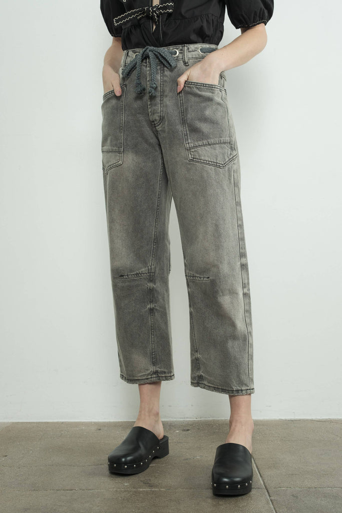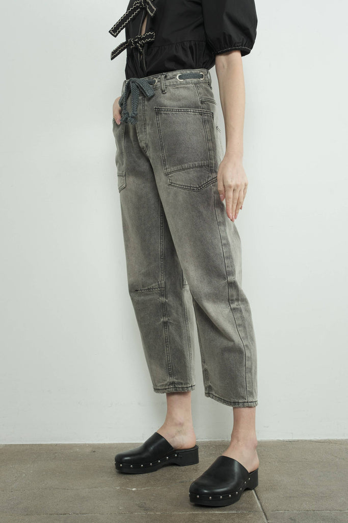 These Barrel Leg Denim Pants redefine bold style with their tapered barrel silhouette and relaxed, slouchy fit. The corded drawstring waist adds an edgy touch while ensuring a customizable fit. Cropped at the ankle and equipped with deep pockets, they blend daring design with practical comfort, perfect for those who want to stand out effortlessly.