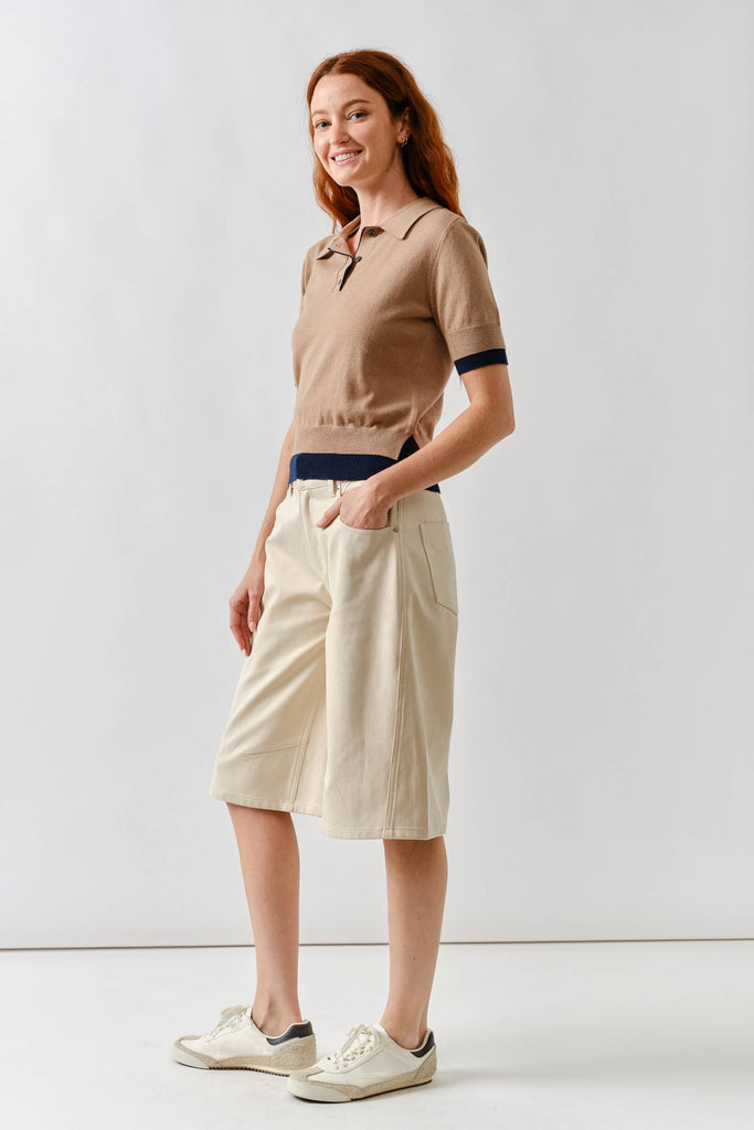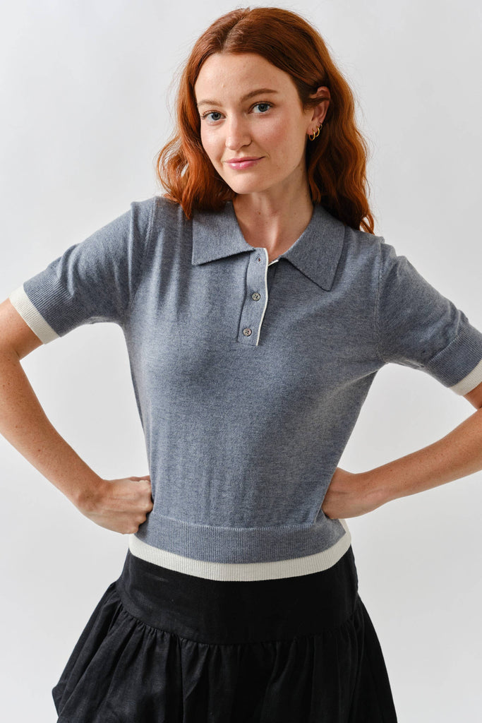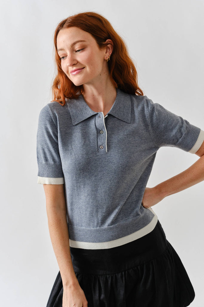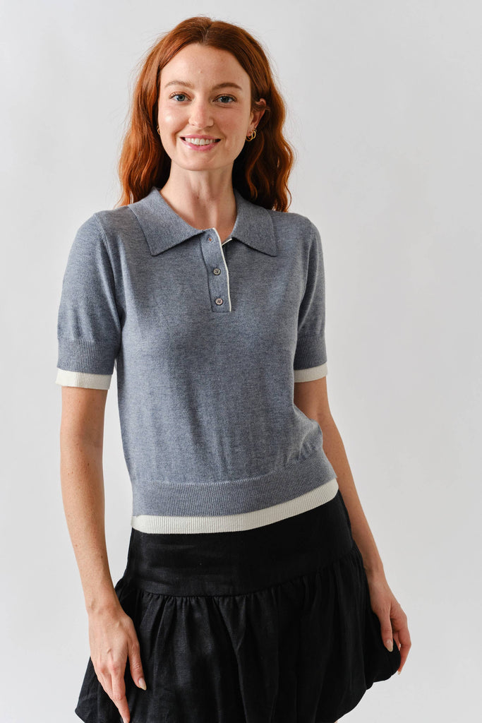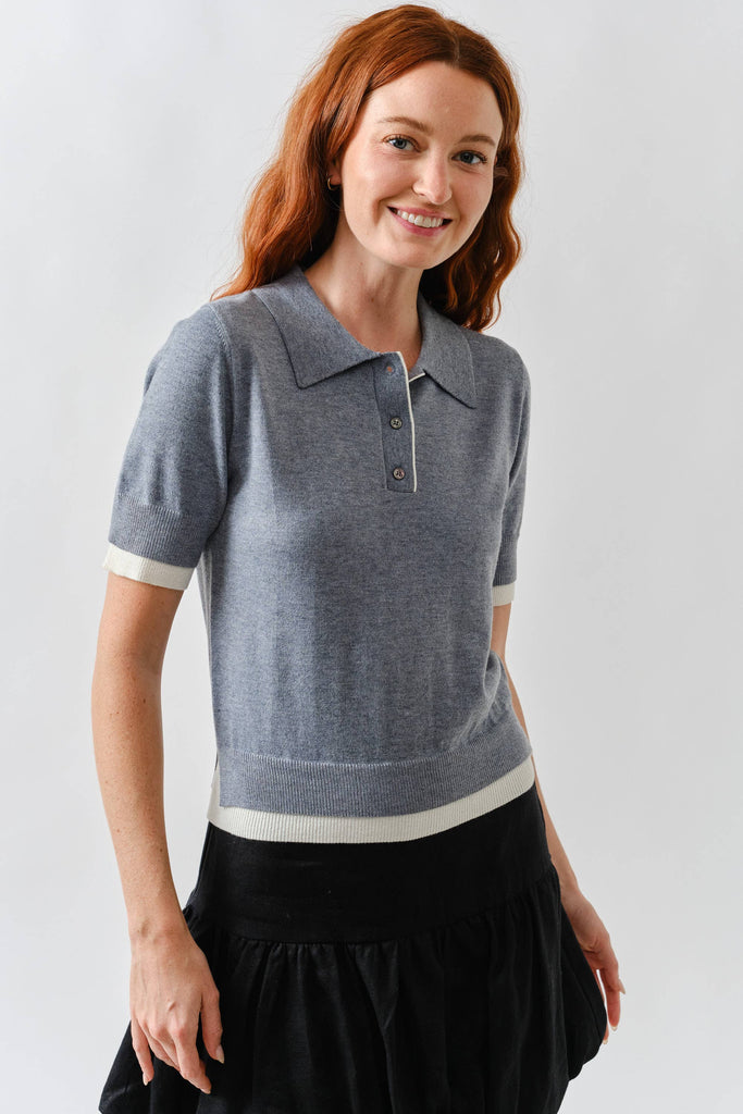 S/S Polo Sweater W/Contrast Edge