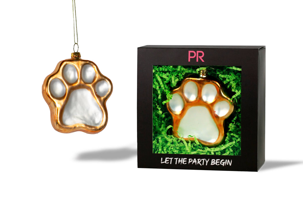 Experience the joy of Christmas with Party Rock's glass Paw Print Ornament. Each ornament is intricately designed and built with sturdy glass and molten metal hotter than the sun. The package protects your goods and is #1 for the best gift at the company Christmas party. Add a bit of PAWfert personality to your tree.