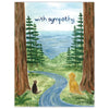 YardiaThe Pet Sympathy card features a watercolor illustration of a dog and a cat in a Pacific Northwest landscape with a hand-lettered "with sympathy" message.