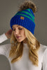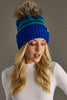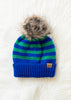 Royal Blue & Green Striped Pom Hat