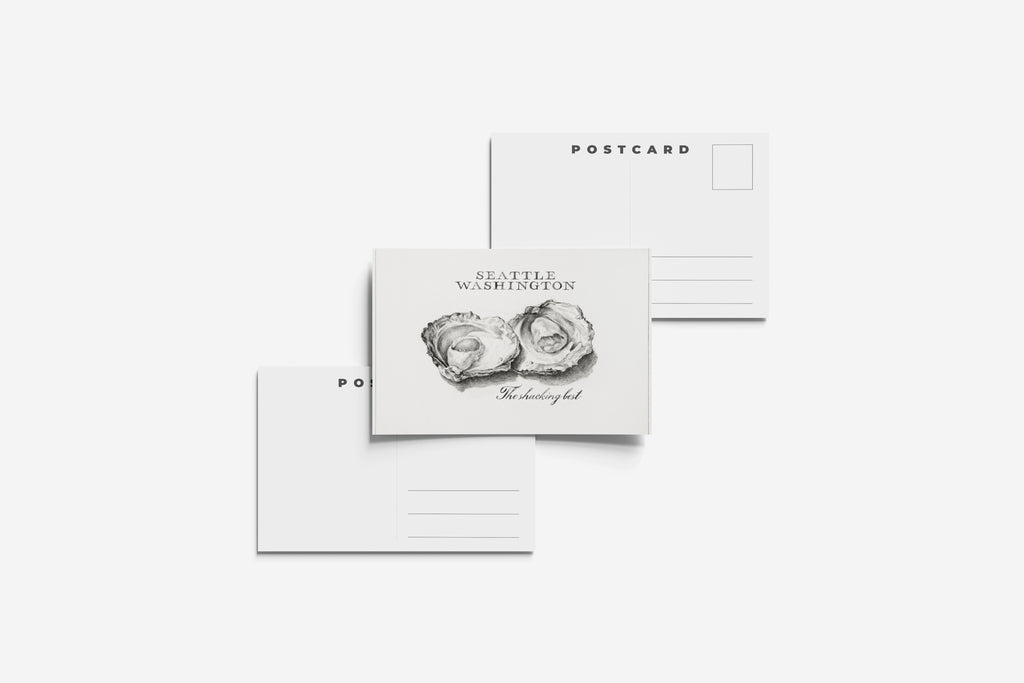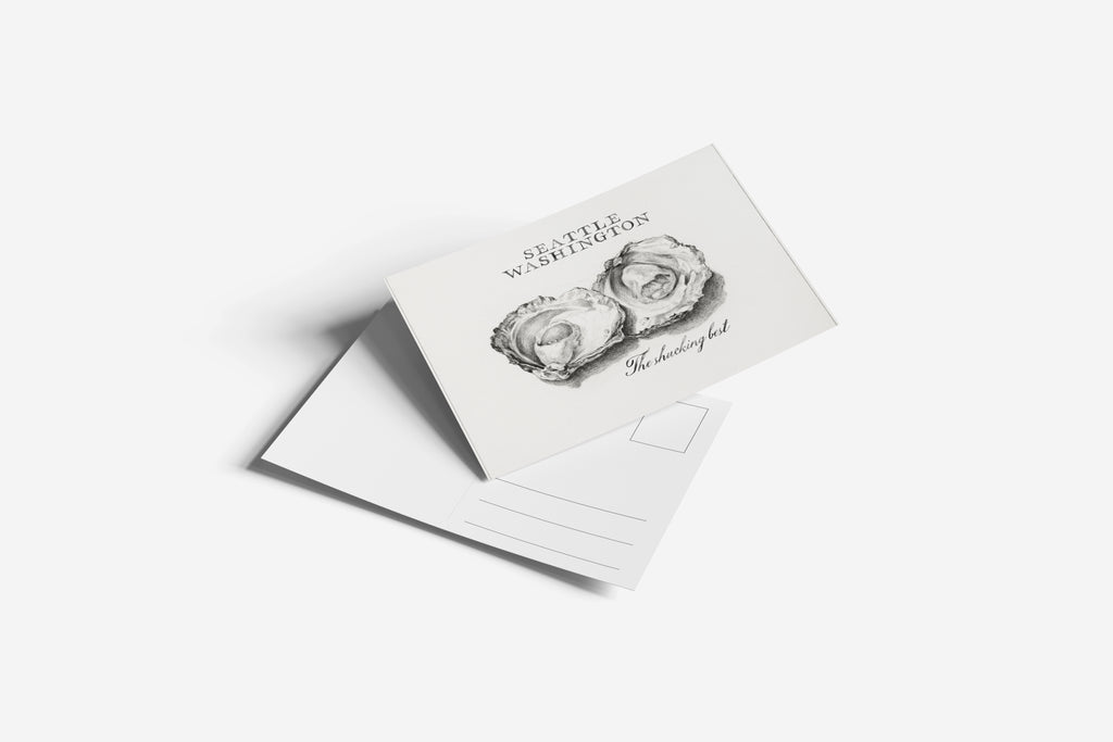 - 4x6" postcard with an uncoated back for writing everybody you know and telling them Seattle is the best.